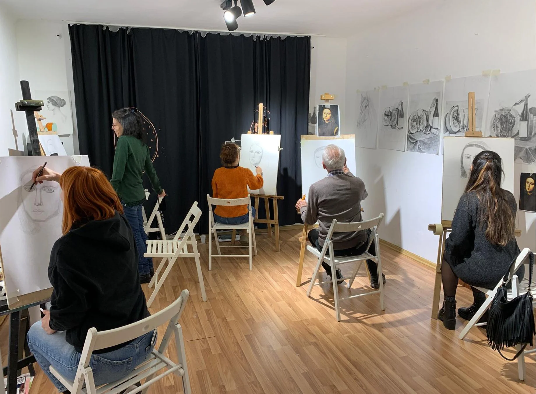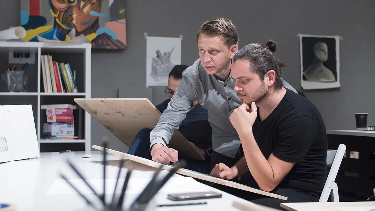 Here we will start with the basic rules of academic drawing explained by Flaviu on paper. If you are more advanced in your drawing skills, Flaviu will prepare fore you tasks and homework that are more advanced. Studies of drapery and different poses of a portrait will take you into a new level of study.