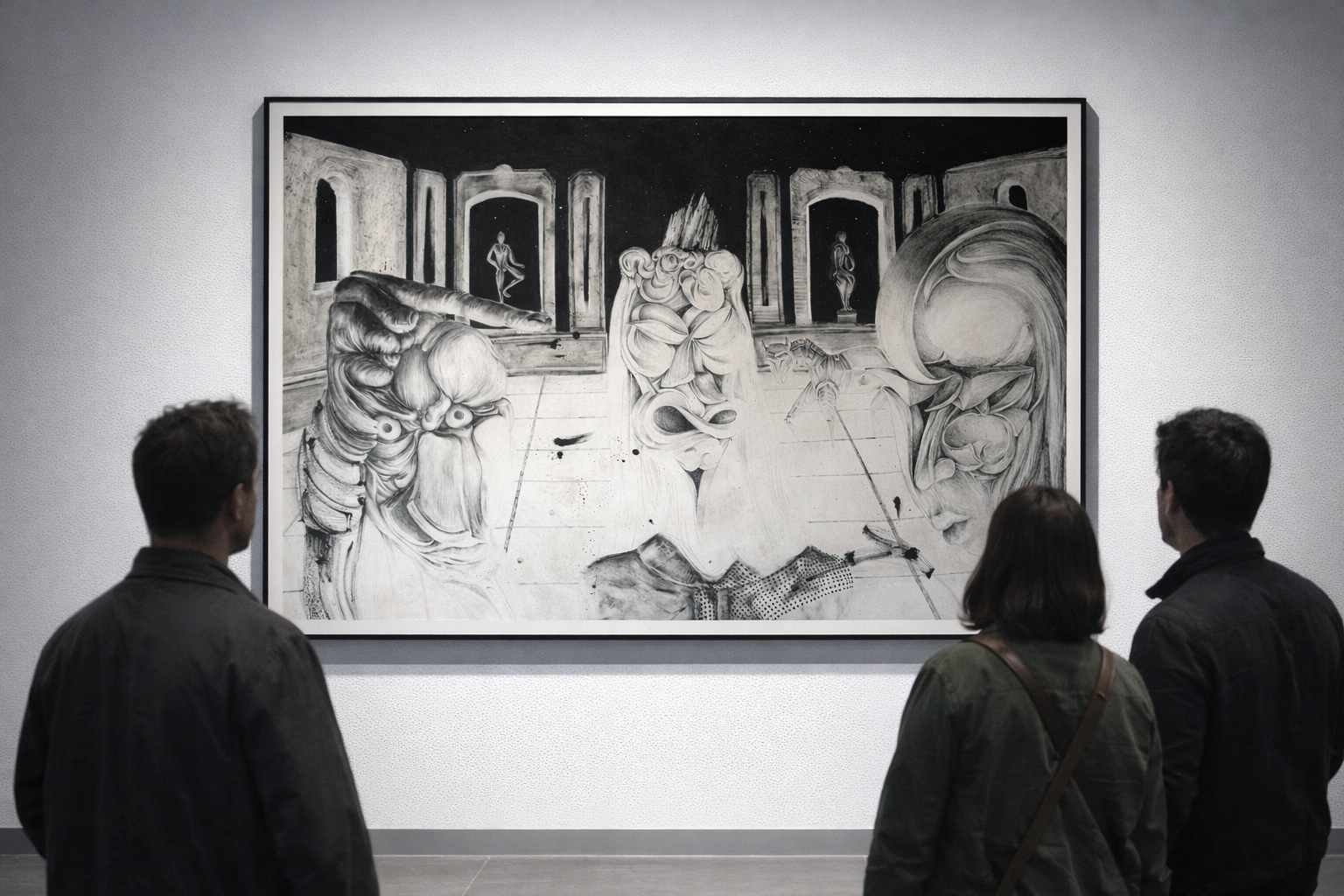 Ai mockup, gallery view with frame at as a big scale drawing